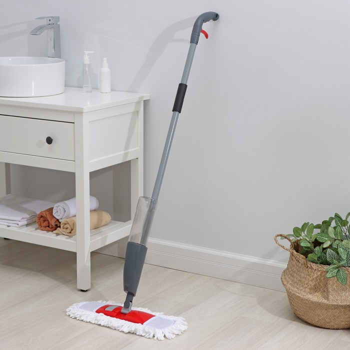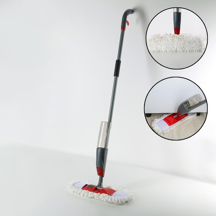 Швабра для мытья пола с распылителем Доляна, насадка из микрофибры 40×10 см, металлическая ручка 124 см, цвет МИКС