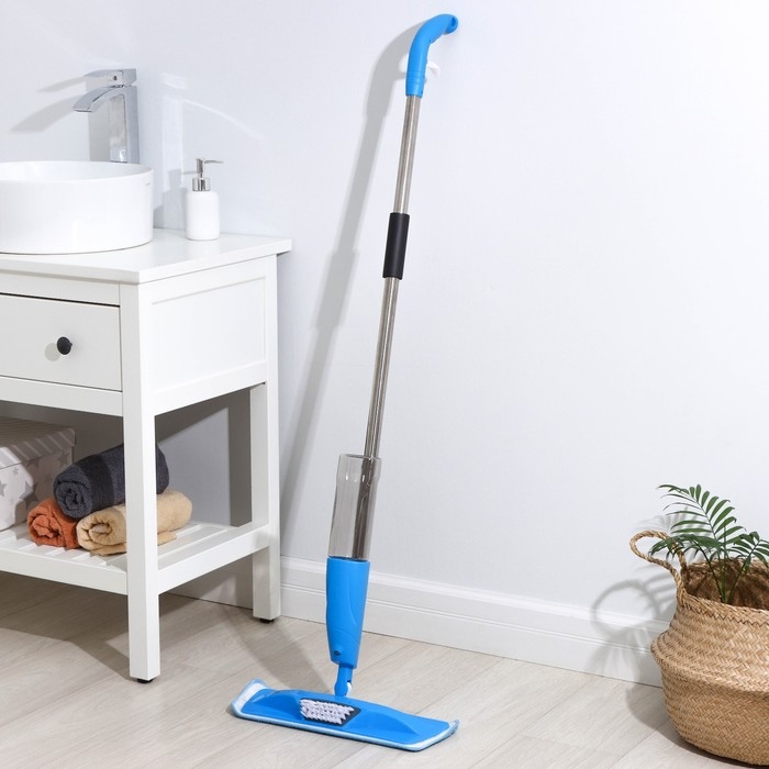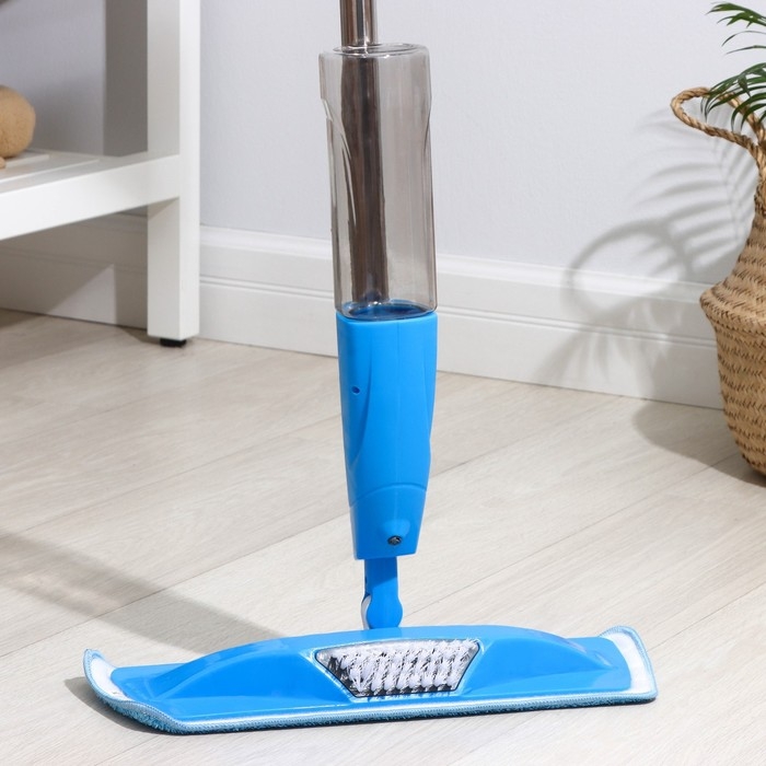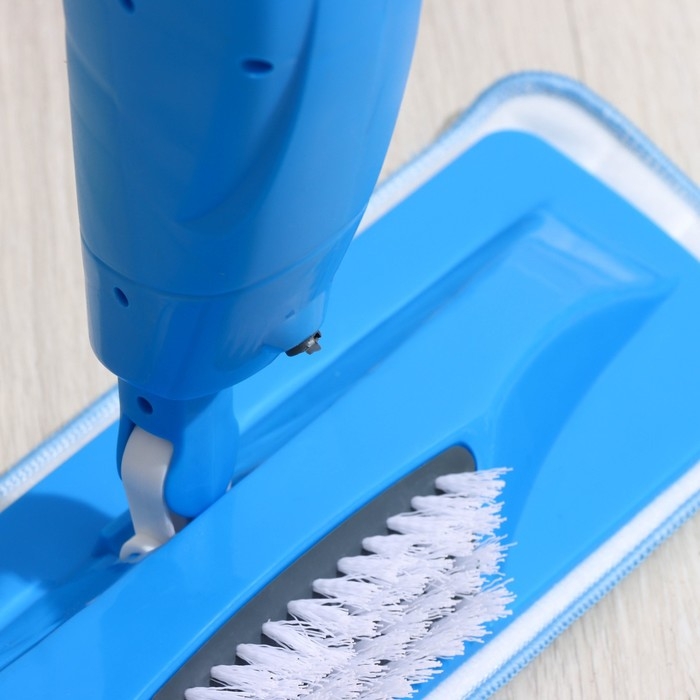 Швабра для мытья пола с распылителем и щёткой Доляна, насадка из микрофибры 42×14 см, стальная ручка 120 см, цвет МИКС