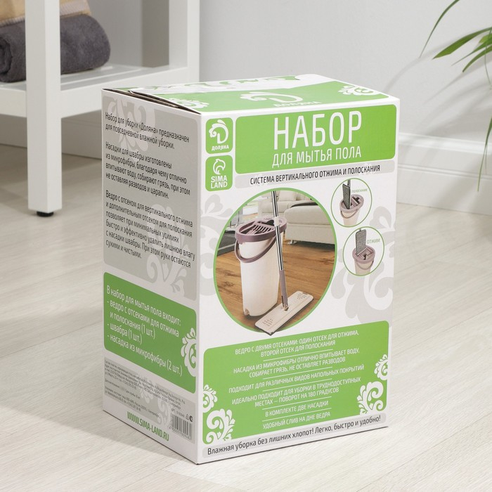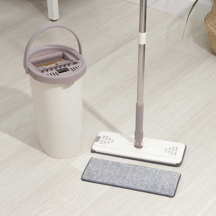 Швабра с отжимом и ведро Доляна: ведро с отсеками для полоскания и отжима 9,3 л, швабра плоская, запасная насадка из микрофибры