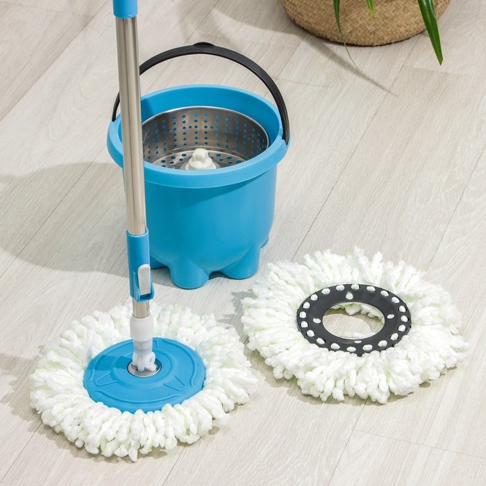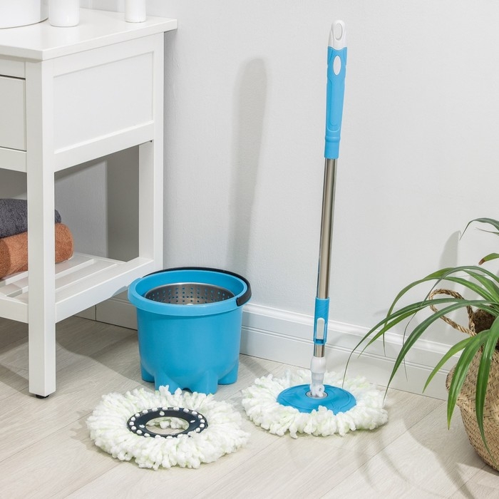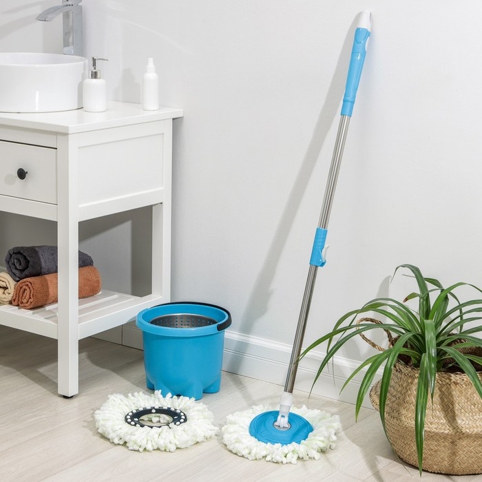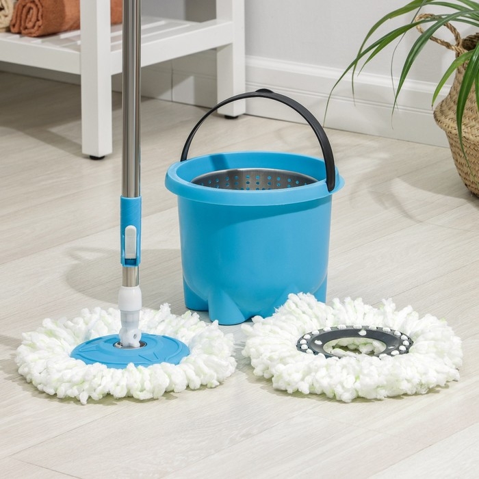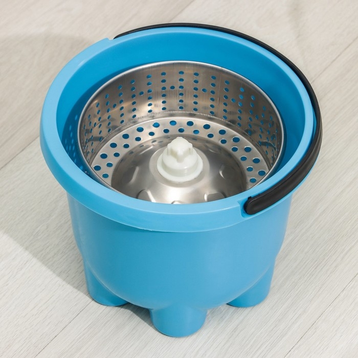Швабра с отжимом и ведро: ведро с металлической центрифугой 7,2 л, швабра с телескопическим черенком 76-105 см, запасная насадка из микрофибры, цвет МИКС