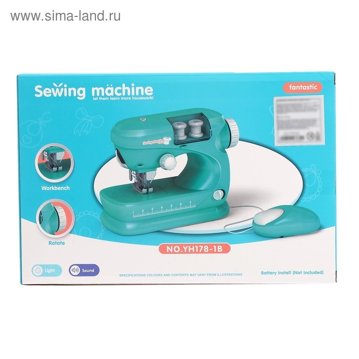 Размер швейной машинки: 28,5 х 11 х 19 см. Машинка имеет световые и звуковые эффекты. Для работы понадобятся 2 батарейки типоразмера AA, в комплект не входят.