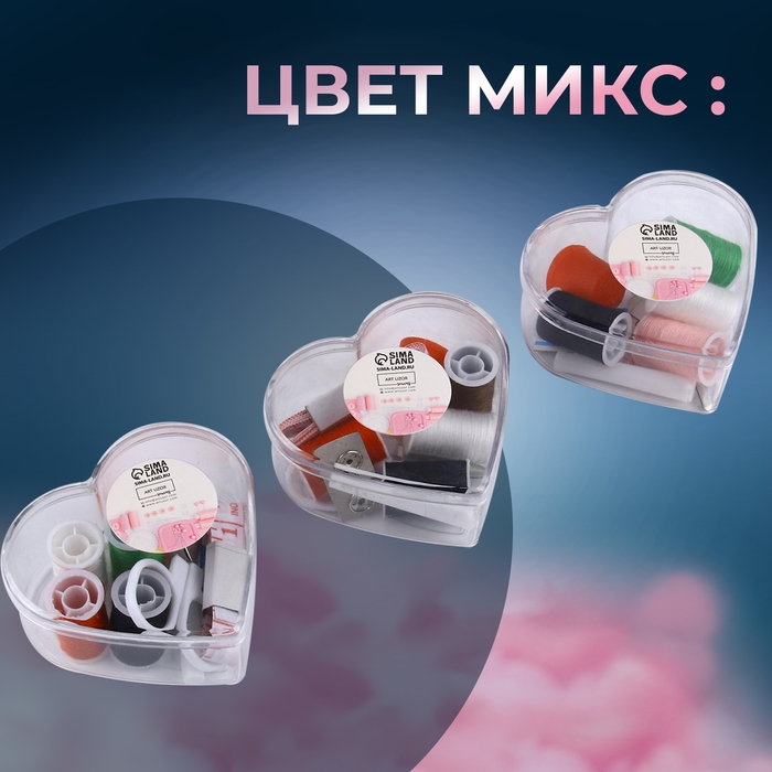 Швейный набор «Сердце», 13 предметов, в пластиковом контейнере, 7,5 × 7 см, цвет МИКС
