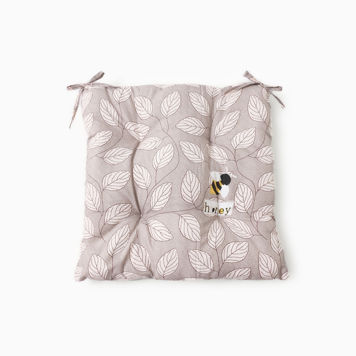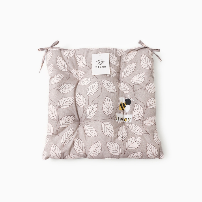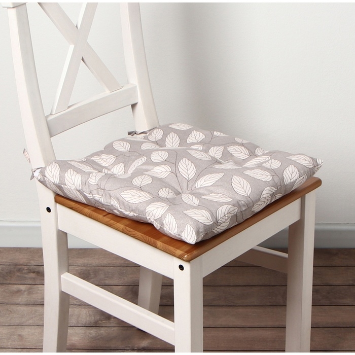 Сидушка на стул Этель "Листья" цв.серый, 40х40 см, 100% п/э