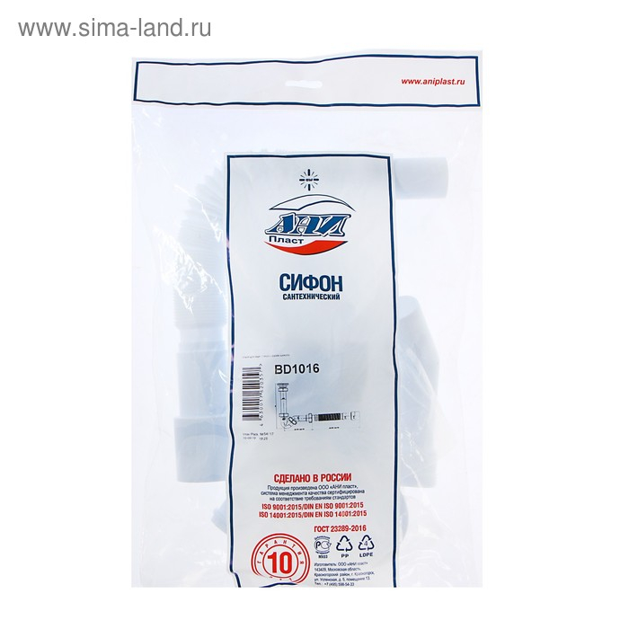 Сифон "АНИ Пласт" BD1016, 1 1/4" х 32 мм, 32 х 32/50 мм, для биде, с трубой