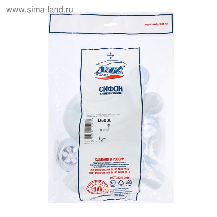 Сифон для мойки "АНИ Пласт" D5000, 1 1/2"х40 мм, прямоточный, смещенный