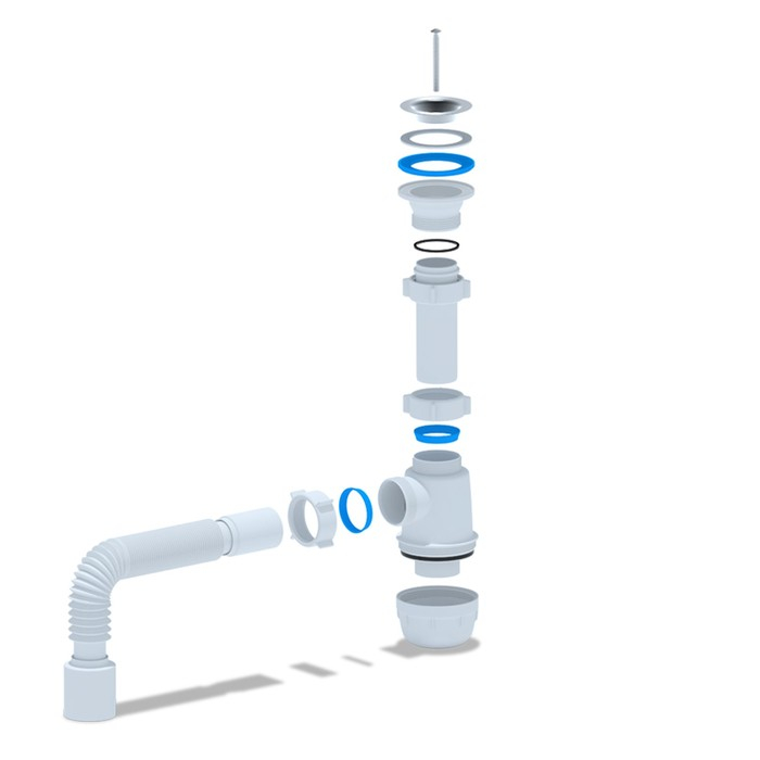 Конструкция позволяет легко, без демонтажа, снять отстойник (стакан) и почистить сифон в случае засорения, достать случайно упавшие в слив раковины мелкие ценные вещи. Сифон прост в установке.