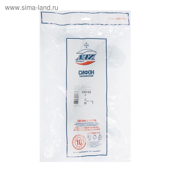 Сифон для мойки "АНИ Пласт" D0110, 1 1/2"х40 мм, прямоточный, с гофрой 40x50 мм
