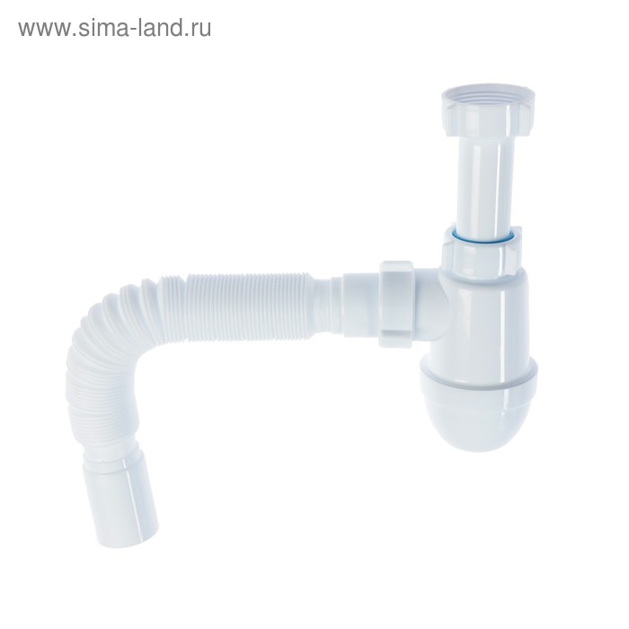 Сифон предназначен для кухонной мойки бутылочного типа. Изделие без выпуска. Для подключения к канализации комплектуется гибкой трубой размером 40 × 40 мм.