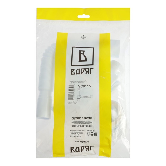 Сифон для мойки "АНИ Пласт" Варяг VC0115, 1 1/2" х 40 мм, с гофрой 40 x 40/50 мм