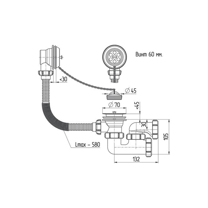 Сифон для ванны Akvater, 1 1/2"х40 мм, регулируемый, с гофрой 40х40/50 мм