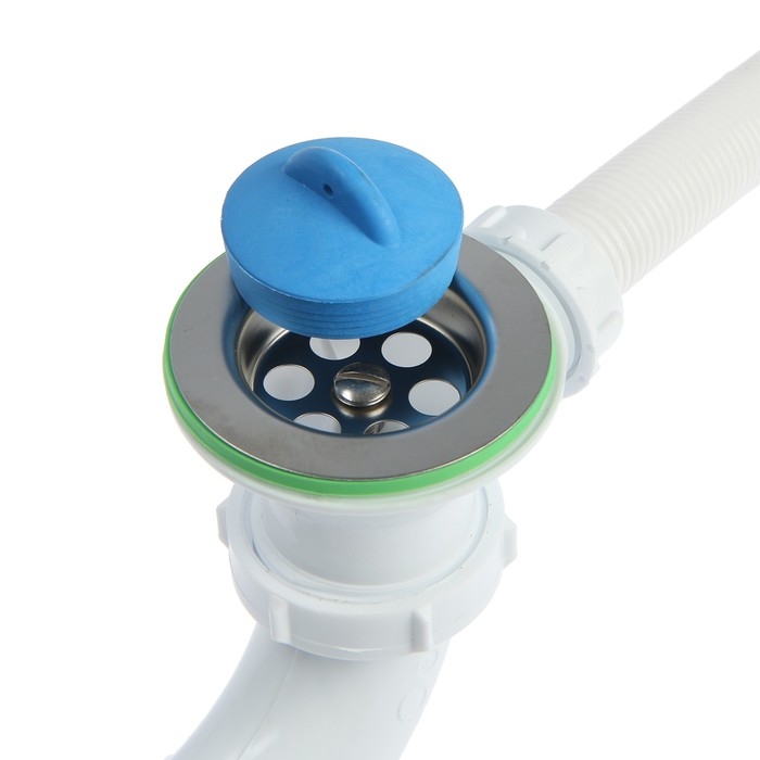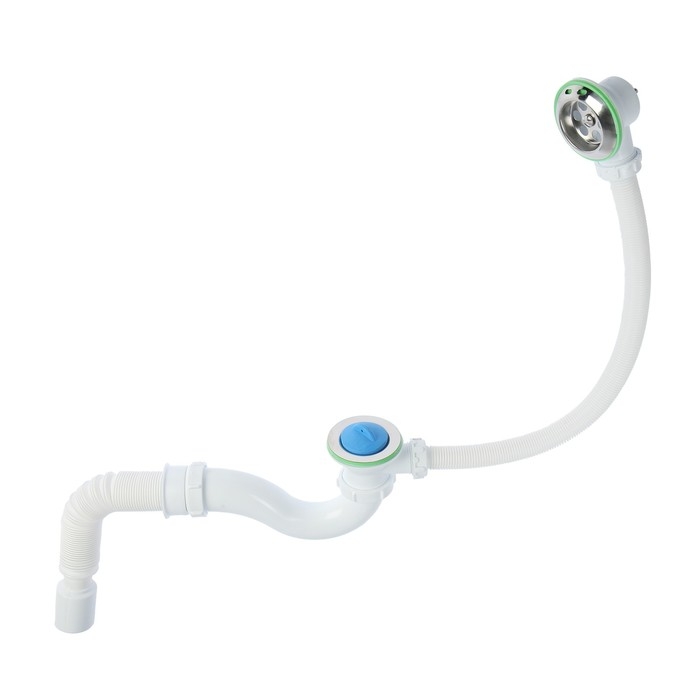 Сифон для ванны Akvater, 1 1/2"х40мм, выпуск и перелив, гофра 40х40/50мм, пробка без цепочки