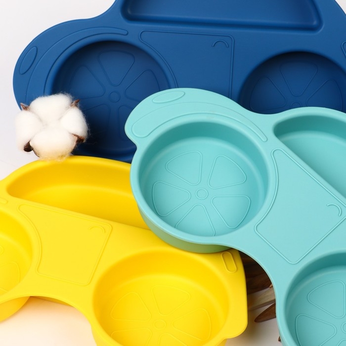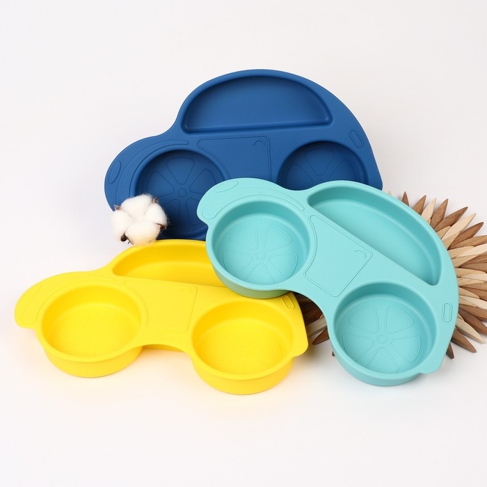 Силиконовая детская тарелка «Машинка» с секциями, цвет МИКС