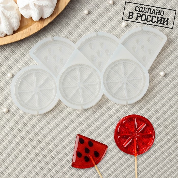 Силиконовый молд для леденцов и шоколада «Апельсин и арбуз», 5 / 4,5 см, цвет прозрачный