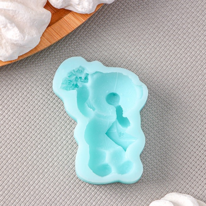 Силиконовый молд «Мишка с букетом», 6,1×4,6×1,4 см, цвет бирюзовый