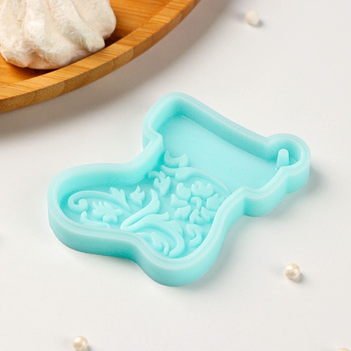 Силиконовый молд «Новогодний носок», 7×6×0,8 см, цвет бирюзовый