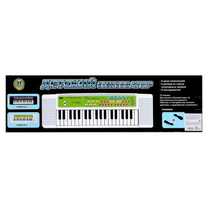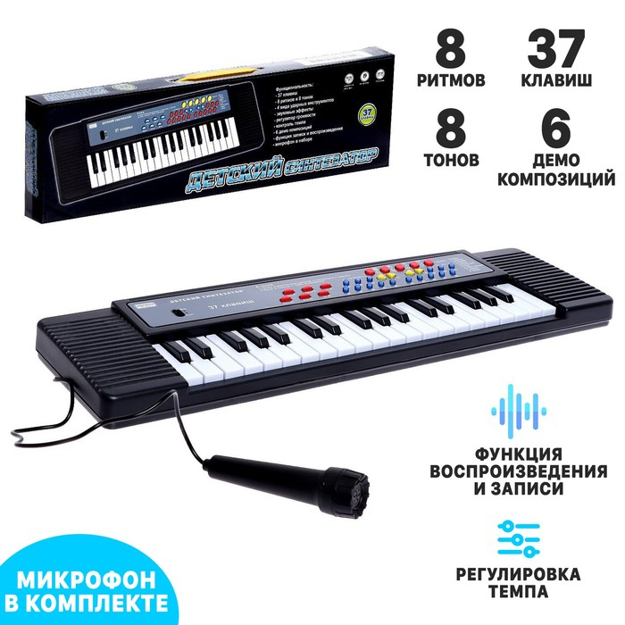 Синтезатор «Детский», 37 клавиш, с микрофоном, цвет чёрный