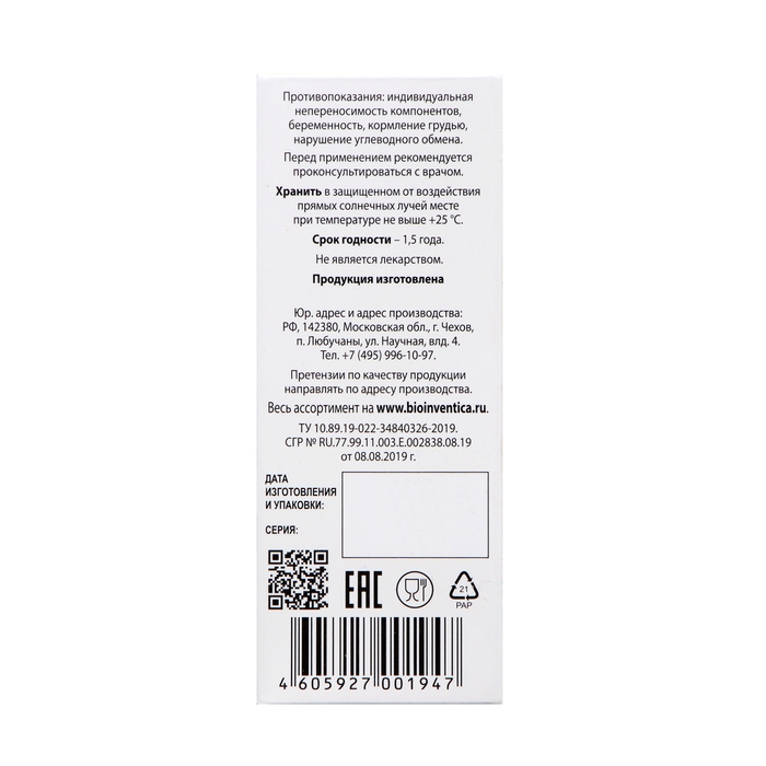 Противопоказания: индивидуальная непереносимость компонентов, беременность, кормление грудью, нарушение углеводного обмена. Перед применением рекомендуется проконсультироваться с врачом.