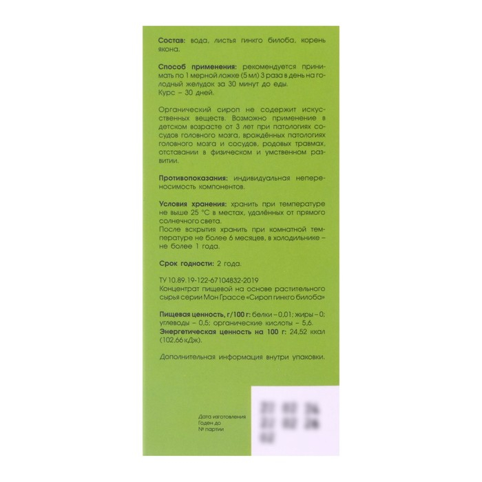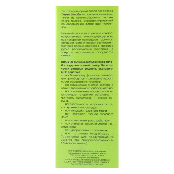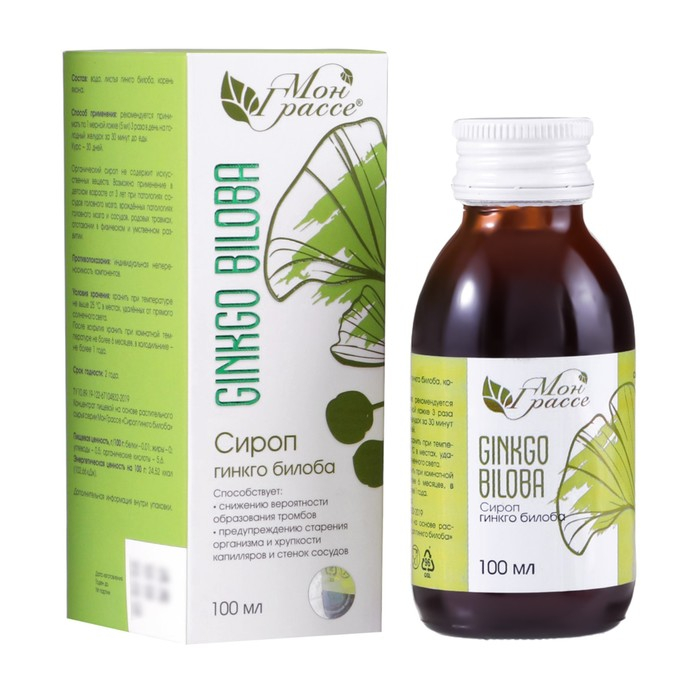 Сироп гинкго билоба, снижение вероятности образования тромбов, 100 мл + мерная ложка