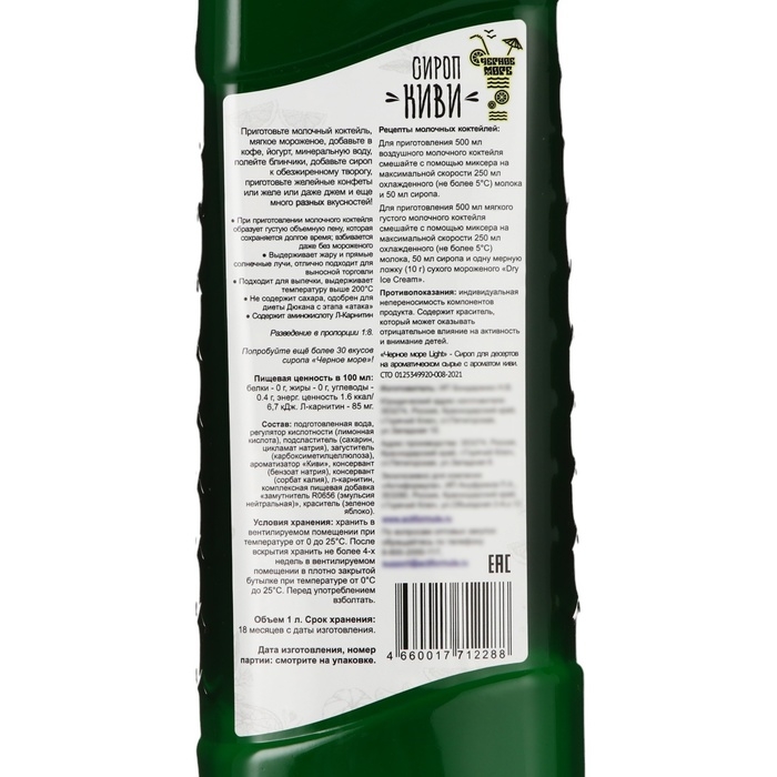 Сироп имеет густую консистенцию и насыщенный вкус киви. Он идеально подходит для добавления в десерты, выпечку, мороженое, йогурты и другие сладкие блюда. Также его можно использовать для приготовления коктейлей, лимонадов и других напитков.
