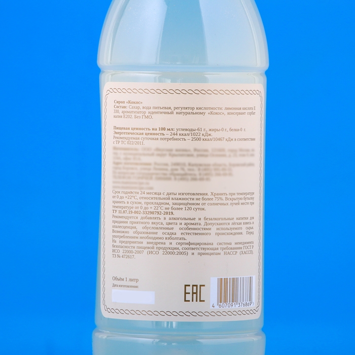 Сироп "Мамин рецепт" со вкусом кокоса, ПЭТ, 1 л
