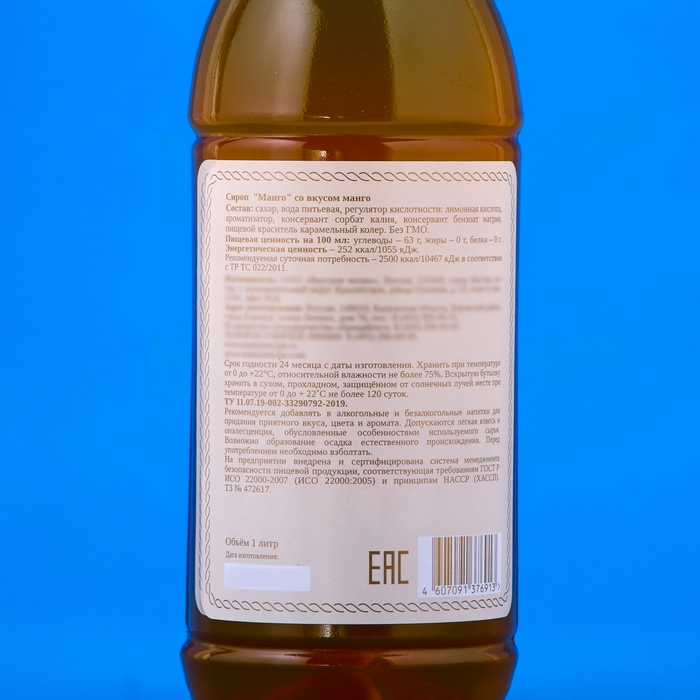 Сироп "Мамин рецепт" со вкусом манго, ПЭТ, 1 л