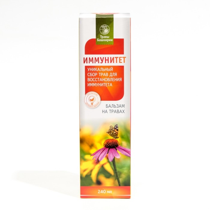 Бальзам «Иммунитет» – это натуральное средство на основе целебных трав, плодов и ягод произрастающих в Башкирии. Он содержит комплекс биологически активных веществ, которые укрепляют здоровье человека. Бальзам рекомендуется употреблять при ослабленном иммунитете, повышенных физических и умственных нагрузках, а также людям, которые часто подвергаются простудным заболеваниям.