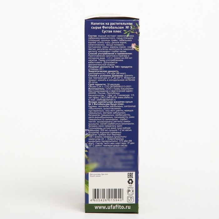 Сироп на растительном сырье "Фитобальзам №3" Сустав плюс 240мл (без сахара)