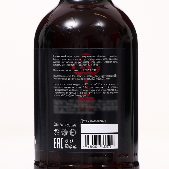 Состав: сахар, вода питьевая, регулятор кислотности лимонная кислота, ароматизатор натуральный, соль, краситель натуральный.