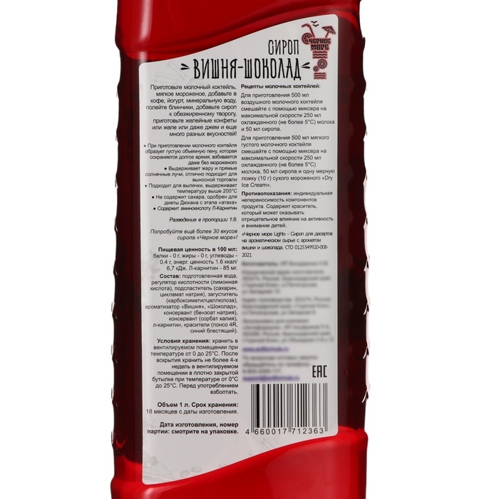 Сироп имеет густую консистенцию и насыщенный вишнево-шоколадный вкус. Он идеально подходит для добавления в десерты, выпечку, мороженое, йогурты и другие сладкие блюда. Также его можно использовать для приготовления коктейлей, лимонадов и других напитков.
