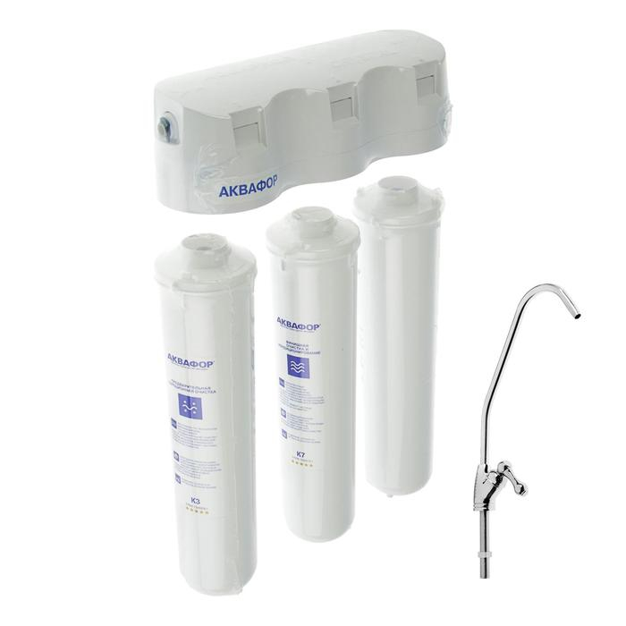 Система для фильтрации воды "Аквафор" Кристалл, К3/К2/К7, 26x9x35 см, с краном, 2.5 л/мин