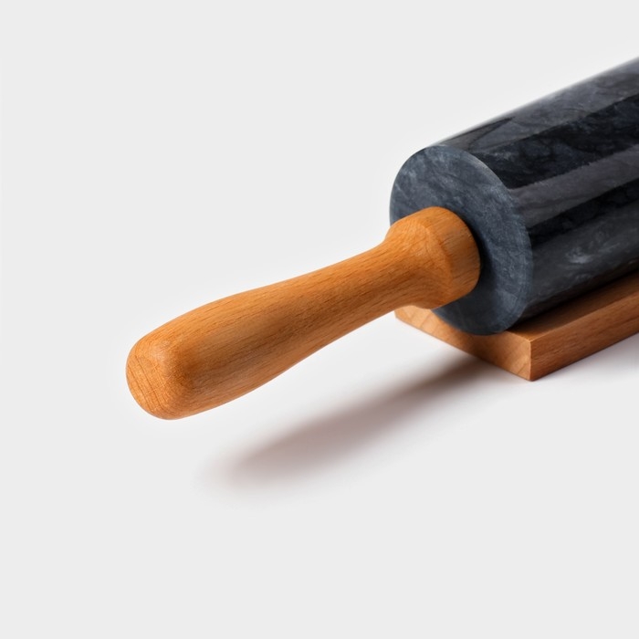 Скалка из мрамора Magistro, с подставкой, 45×5 см, цвет чёрный