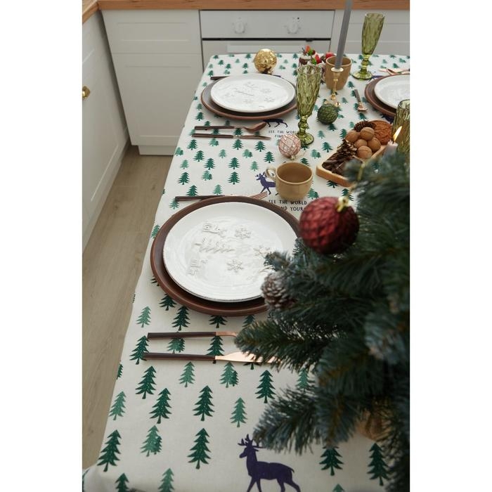 Скатерть Доляна "Елочки" 145х200±3см,100%пэ, рогожка 130 гр/м
