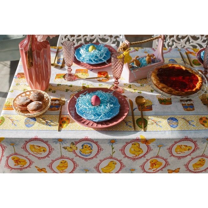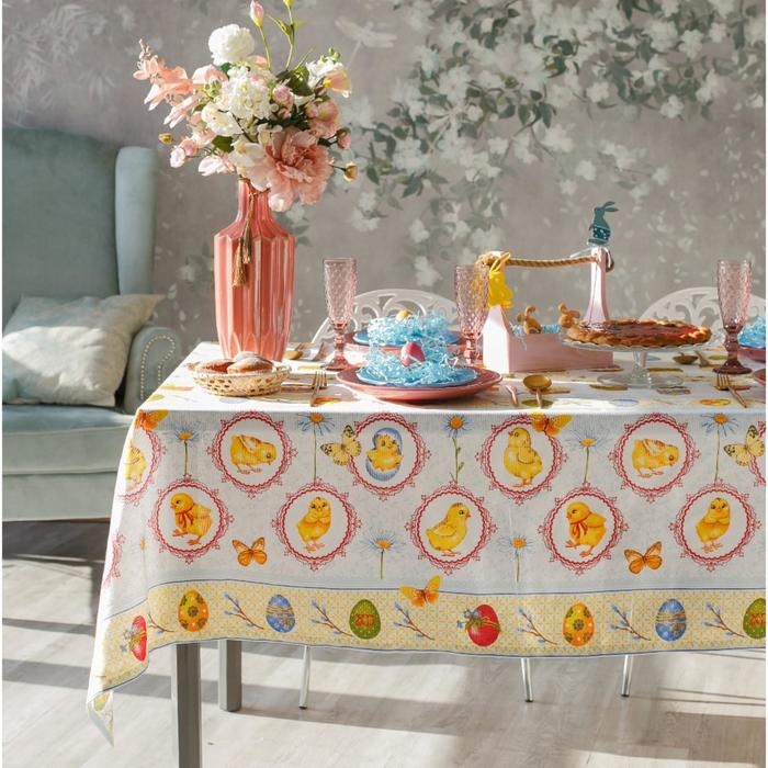 Скатерть Доляна «Пасха», 180 × 144 см, 100 % хлопок, рогожка, 164 г/м²