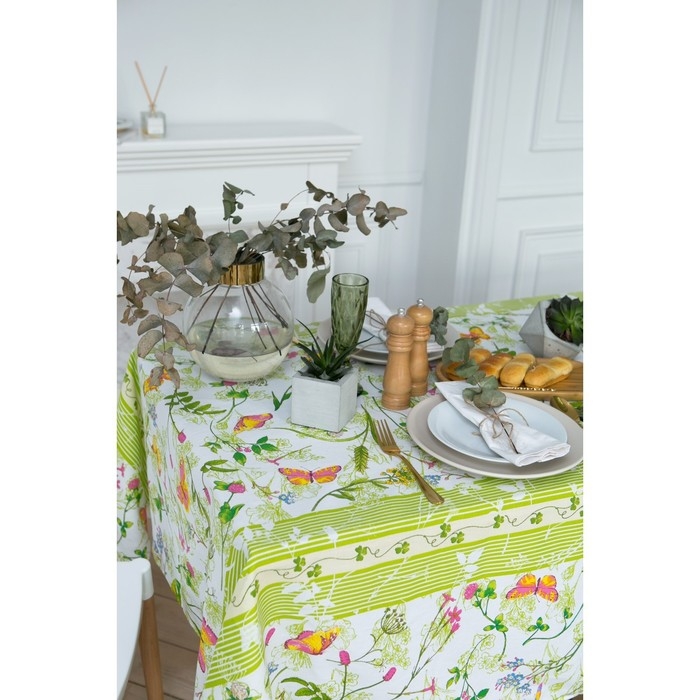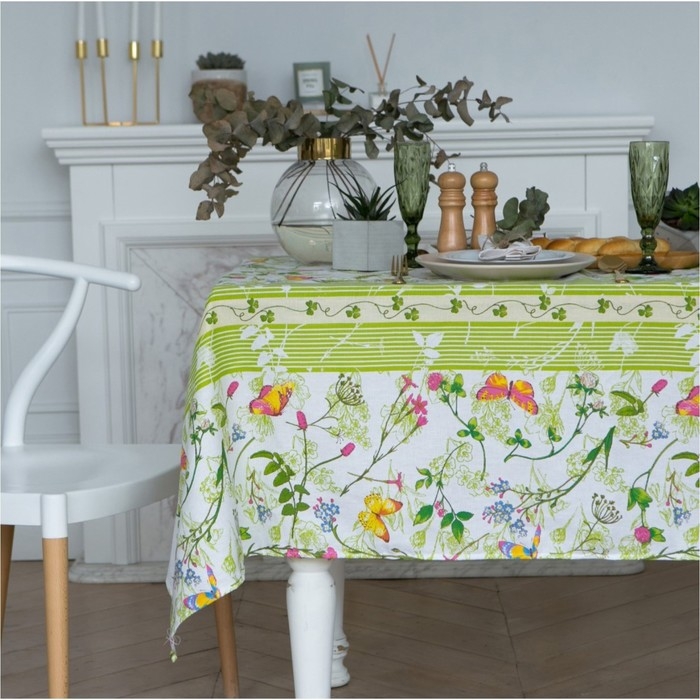 Приятная на ощупь скатерть из 100%-ного хлопка станет настоящей находкой для хозяйки! Материал-рогожка, из которого выполнено изделие, имеет плотную и упругую структуру, обладает высокой прочностью и на ура справляется с первостепенными задачами: