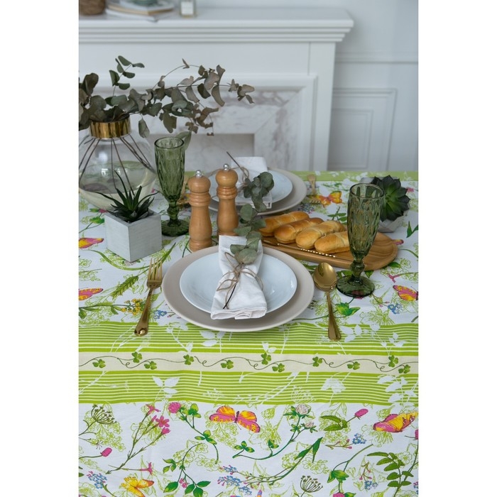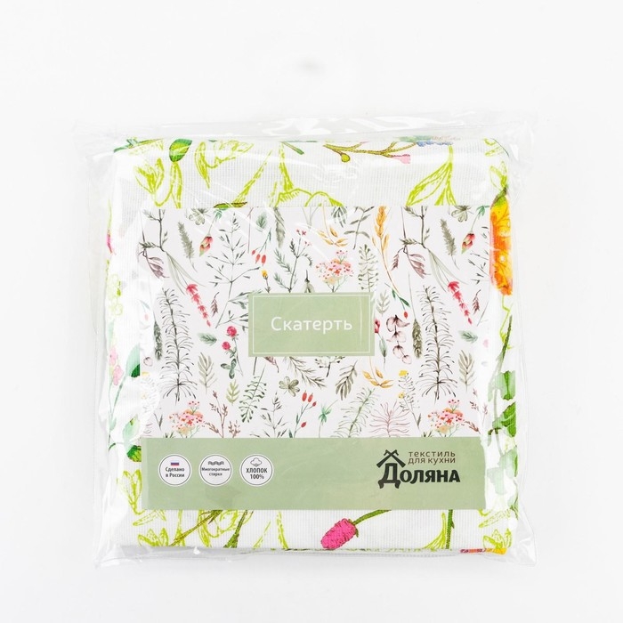 Скатерть "Доляна" Полевые цветы 220*144 см, 100% хлопок, рогожка, 164 г/м2