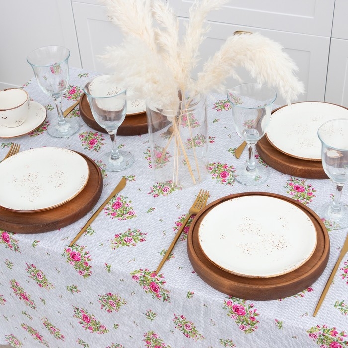 Скатерть Доляна Roses on linen 146х220 см, 100% хлопок, рогожка 164 г/м2