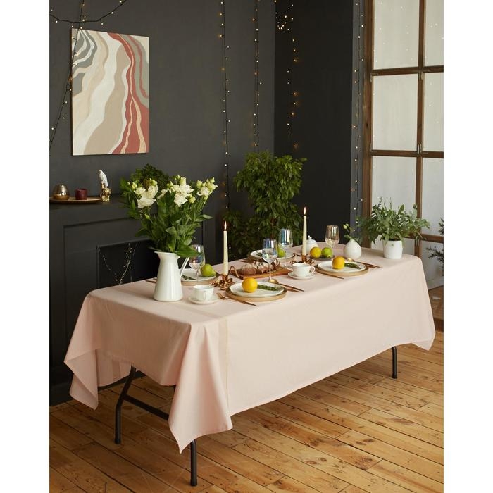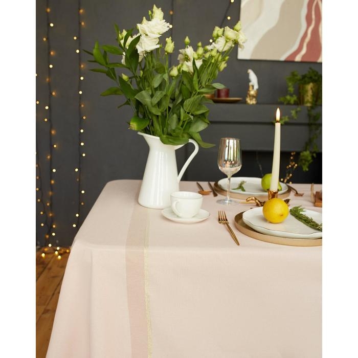 Скатерть "Этель" 110х165 см, цв. пудровый с золотой нитью, 100% хлопок, 163 г/м2