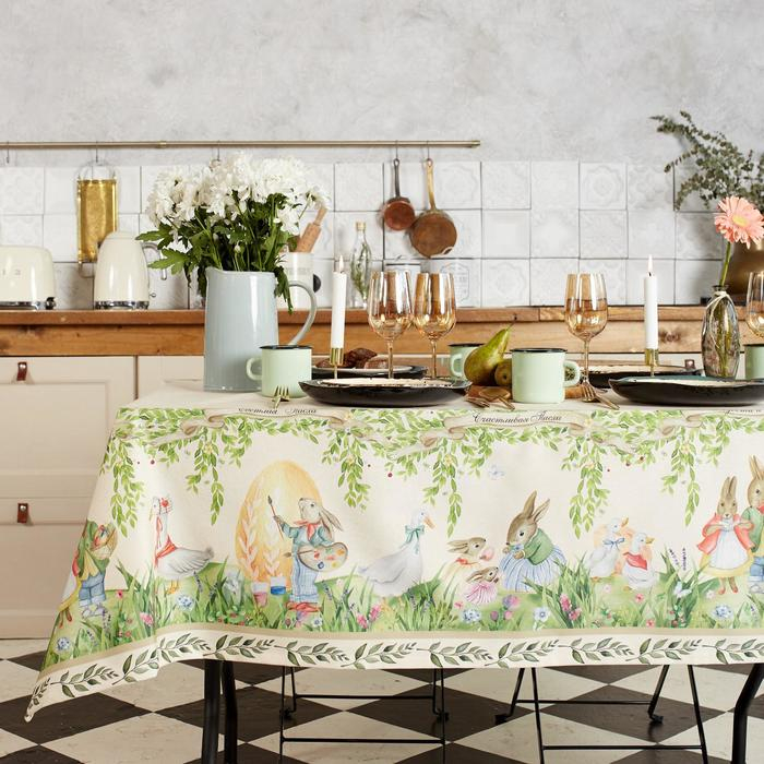 Скатерть "Этель" Акварельные зайцы 180х147 см, 100% хл, саржа 190 гр/м2