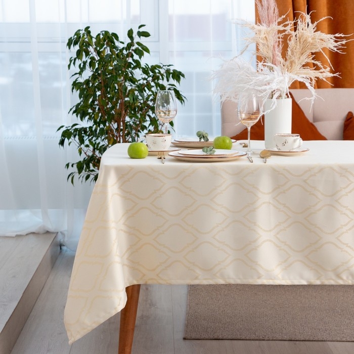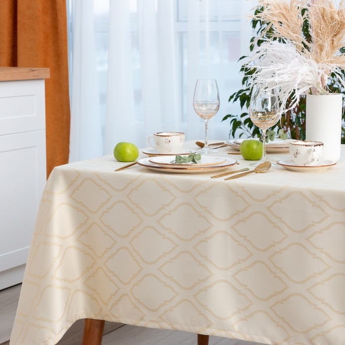 Скатерть Этель "Ажур" цв.бежевый, 142*220 +/-3 см, 115 ±10 гр,100%