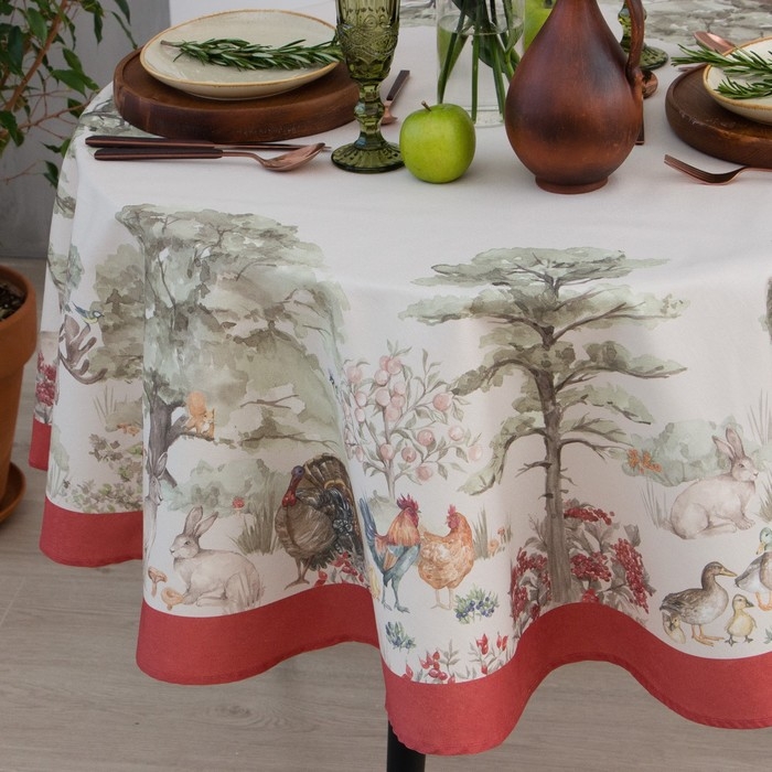 Скатерть Этель Forest landscape d=215 см с ГМВО, 100% хлопок, саржа 190 гр/м2