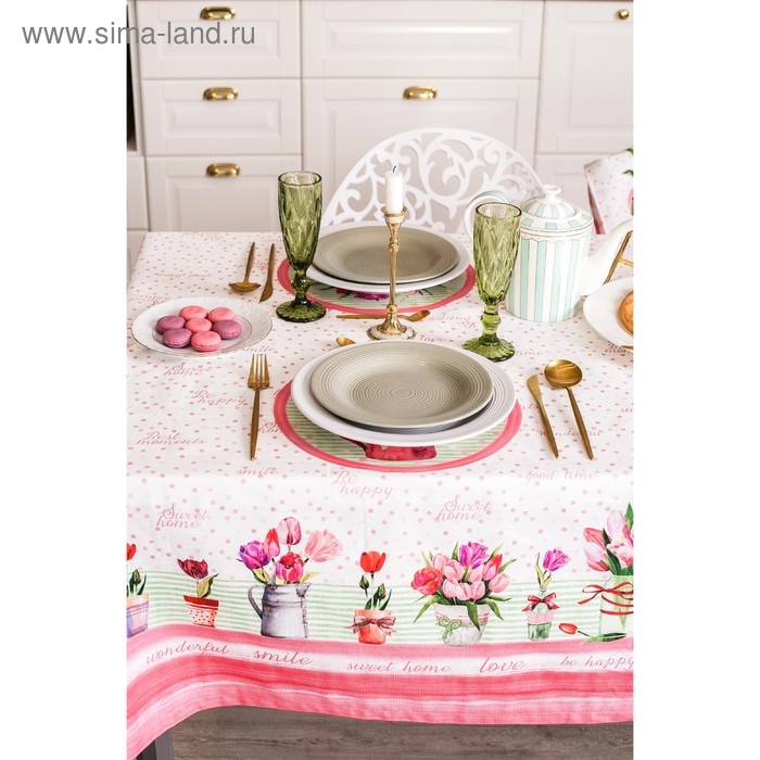 Скатерть "Этель" Тюльпаны 220х147 см, 100% хлопок, репс 210 гр/м2