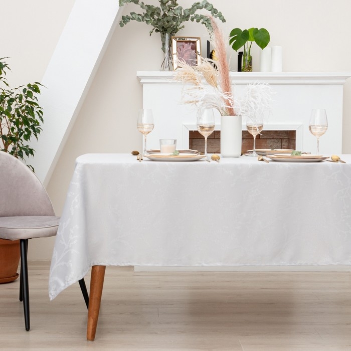 Скатерть Этель "Ветвь" цв.серебро, 142*220 +/-3 см, 115 ±10 гр,100%