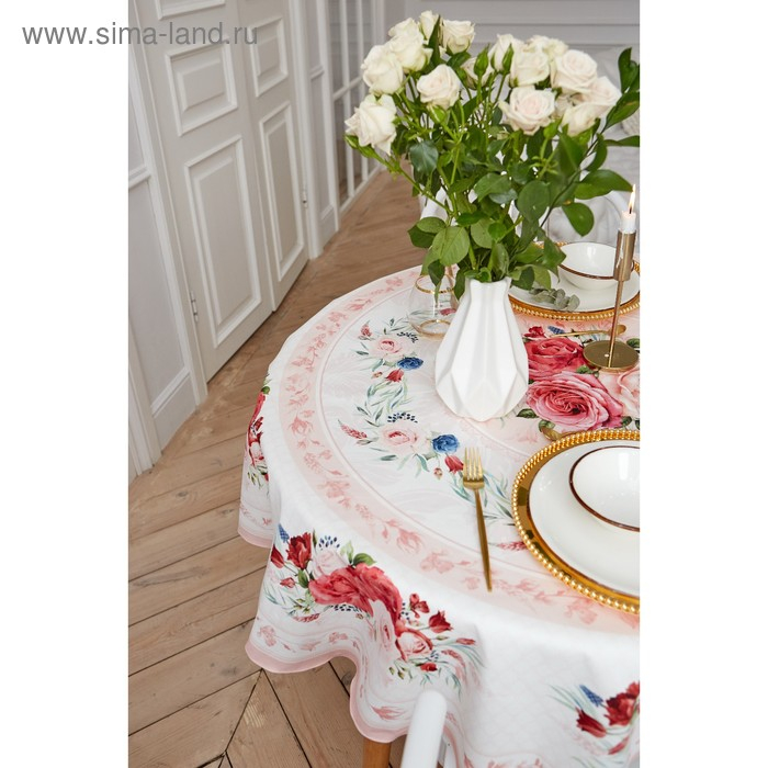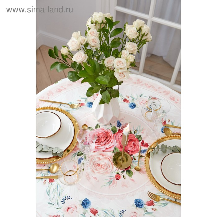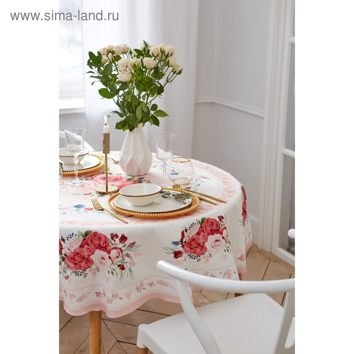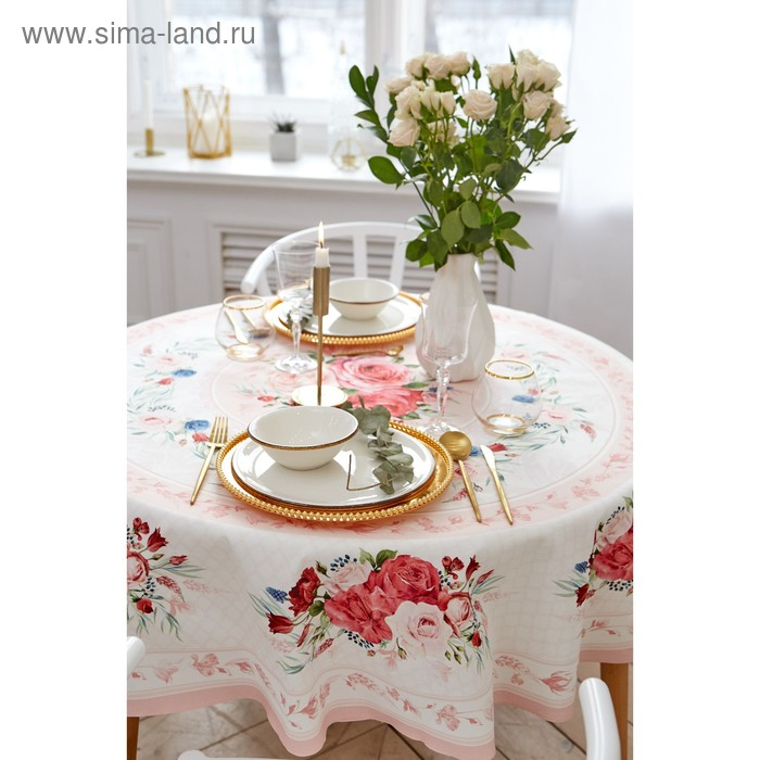 Скатерть круглая Этель «Розы» d=220 см, 100 % хлопок