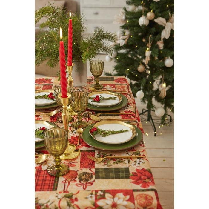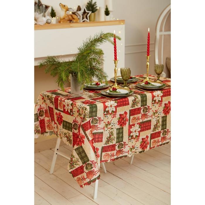Скатерть новогодняя Доляна "Новогодние игрушки" 145*300 +/- 2 см, 100% п/э