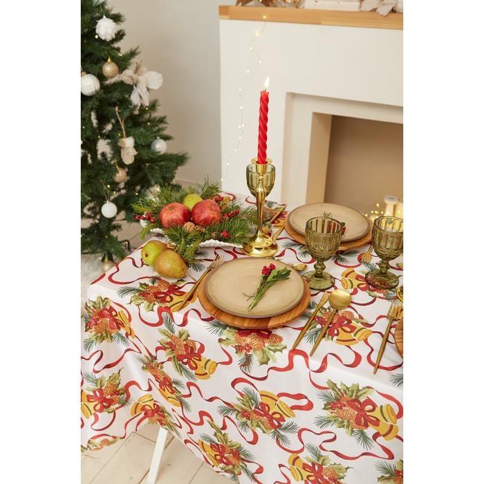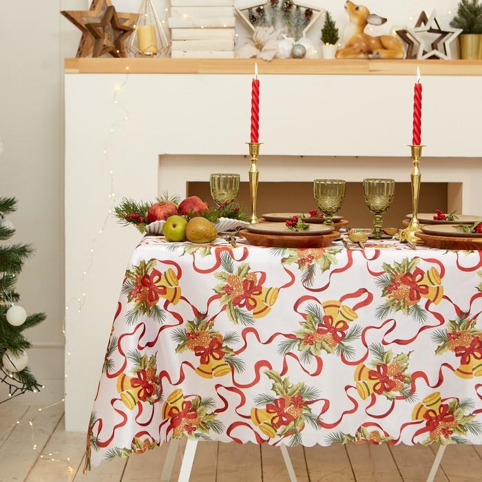 Скатерть новогодняя Доляна "Новогодние колокольчики" 145*260 +/- 2 см, 100% п/э