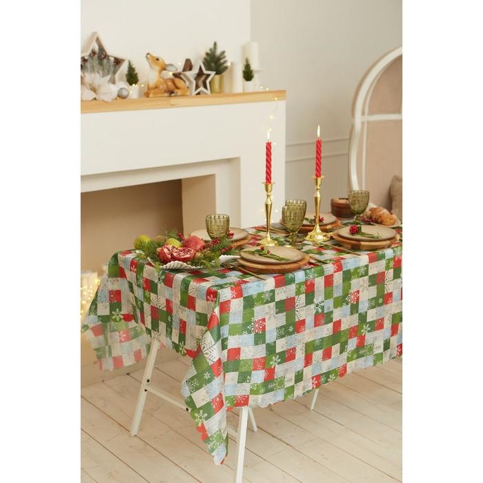 Скатерть новогодняя Доляна "Новогодняя мозаика" 145*220 +/- 2 см, 100% п/э