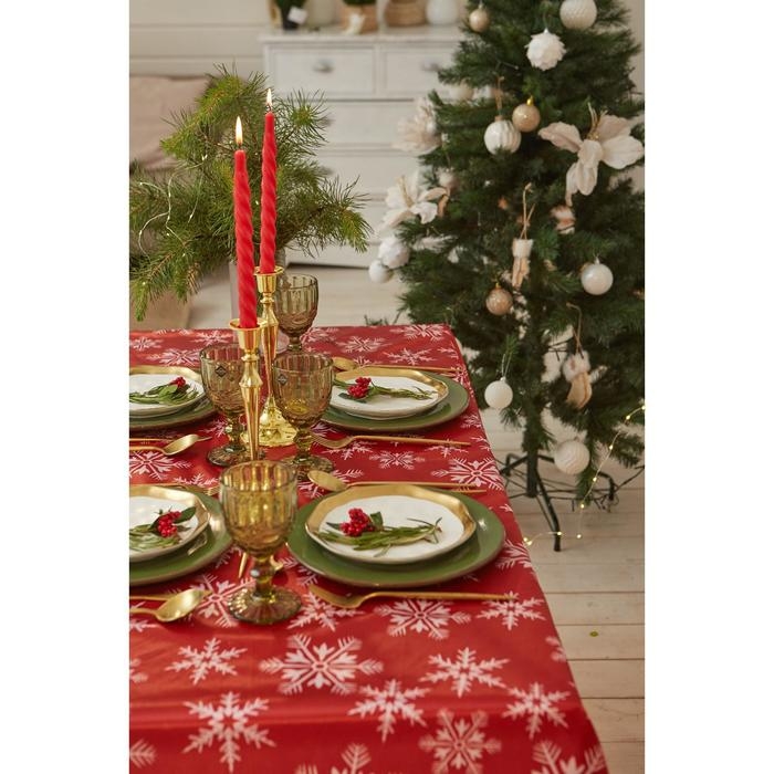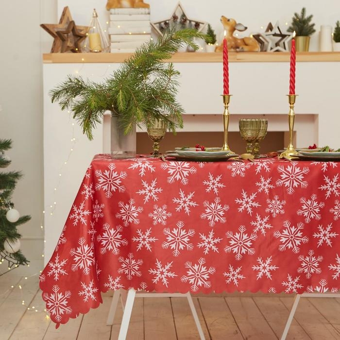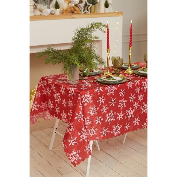 Скатерть новогодняя Доляна "Снежинки" 110*145 см, 100% п/э
