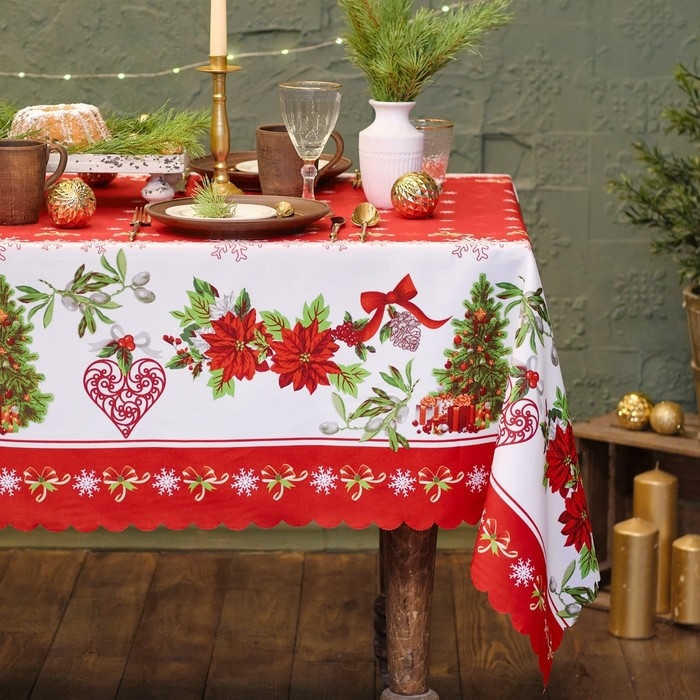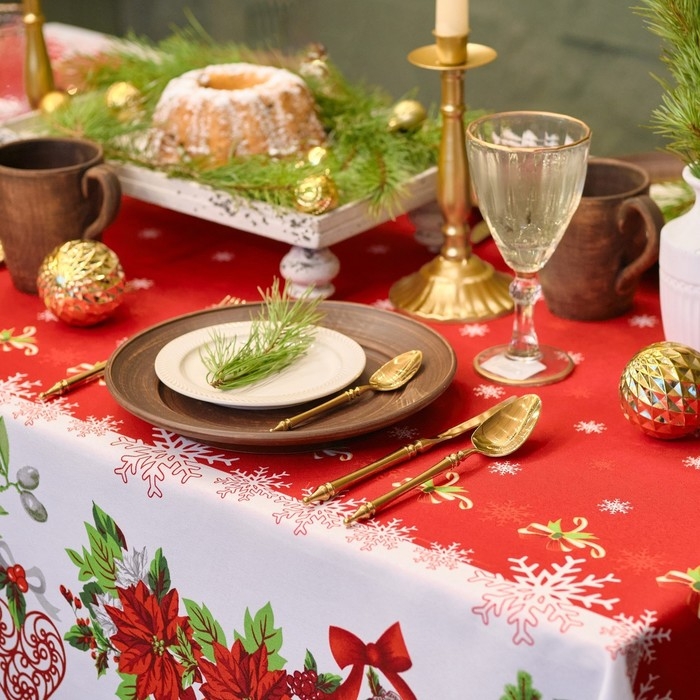 Скатерть новогодняя Доляна "Уютный праздник" 145*300 см, 100% п/э