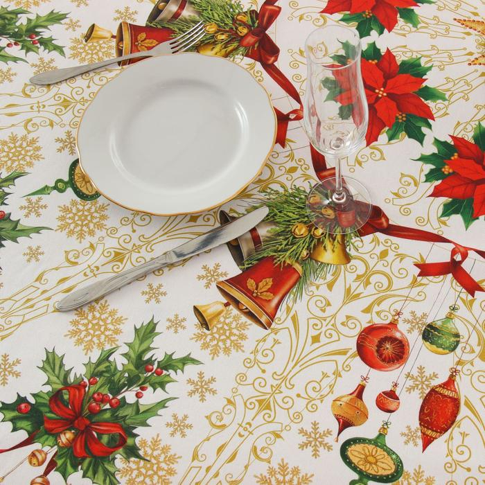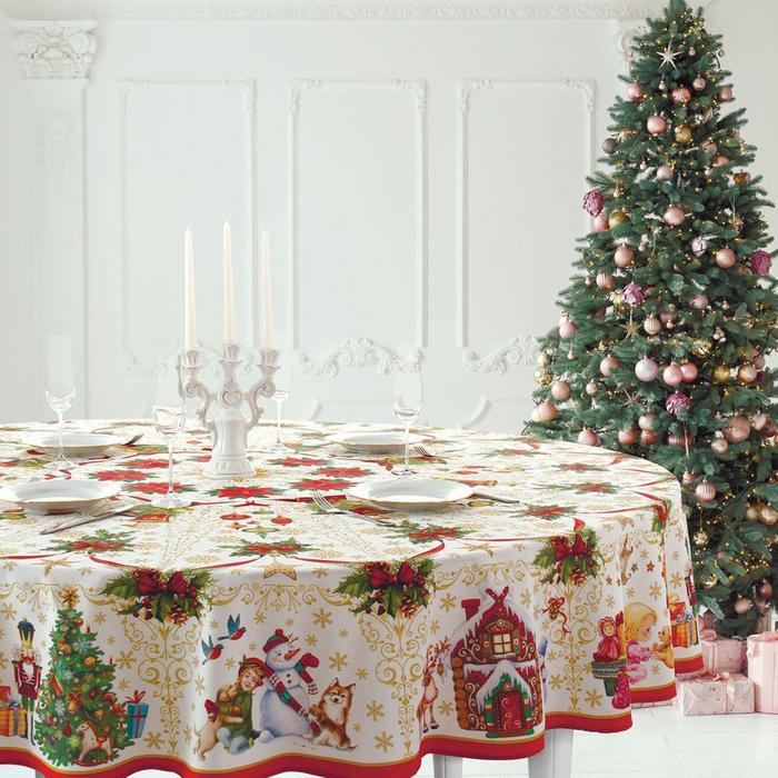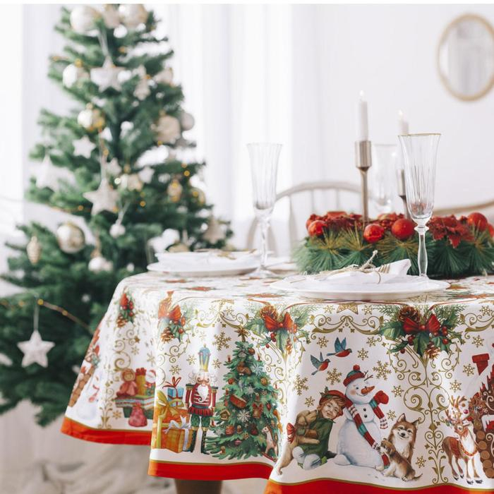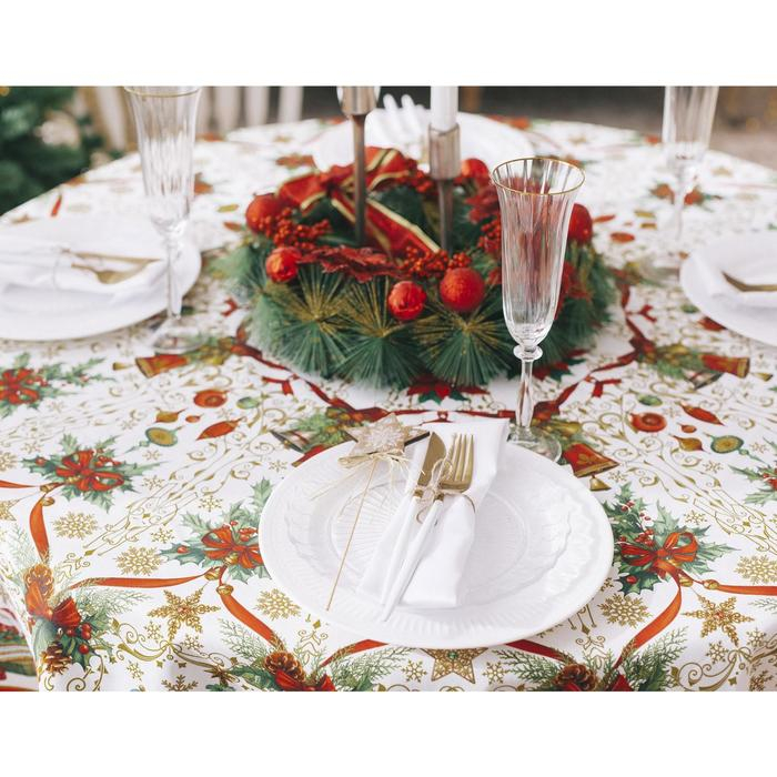 Скатерть новогодняя круглая Этель "Новогодние игрушки" d = 160 см, 100 % хлопок