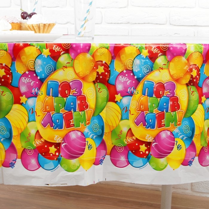 Скатерть одноразовая «Поздравляем!», 180х137 см